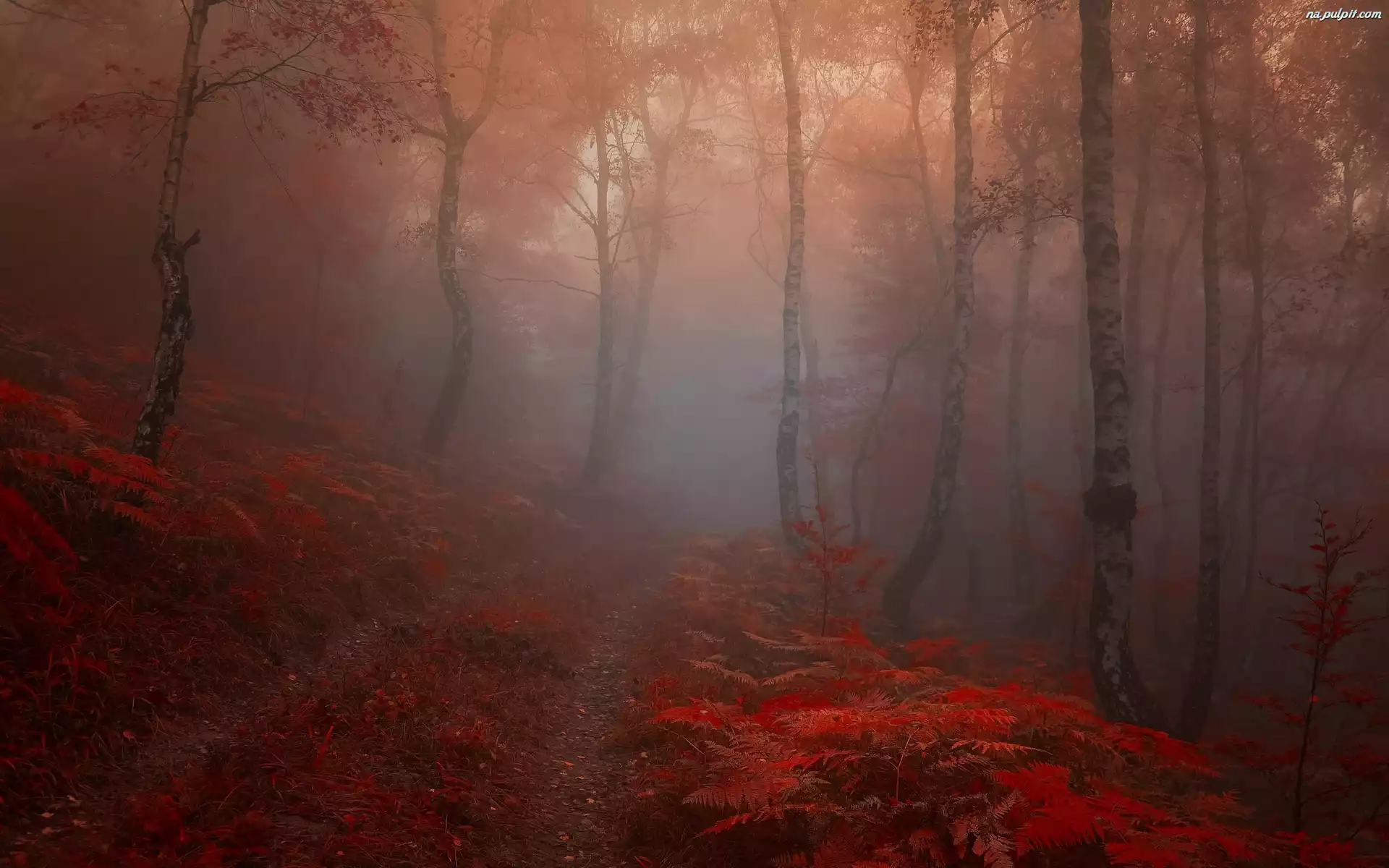 Ścieżka, Mgła, Las, Liście Na Pulpit