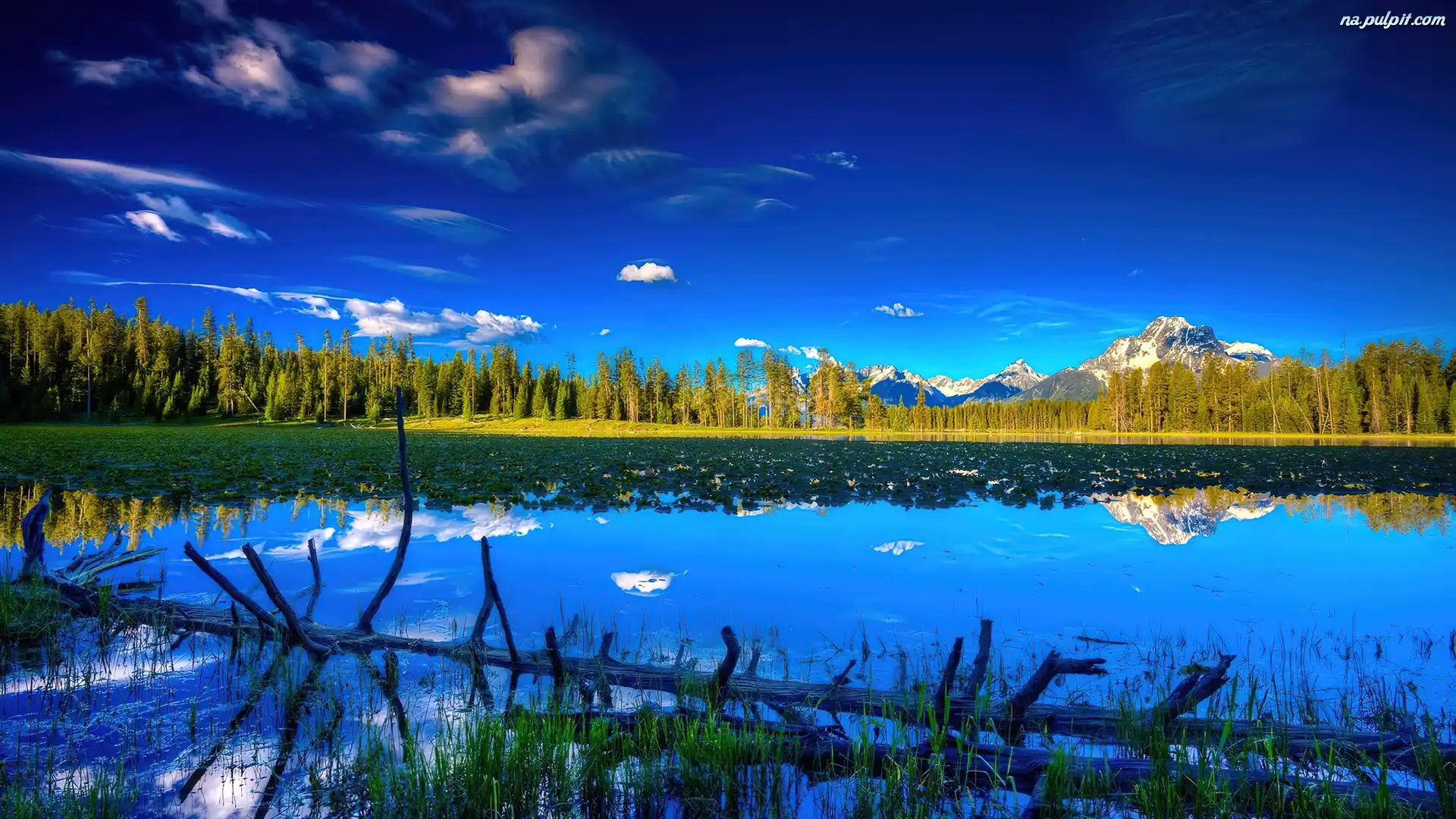 Las, Chmury, Niebo, Jezioro Na Pulpit