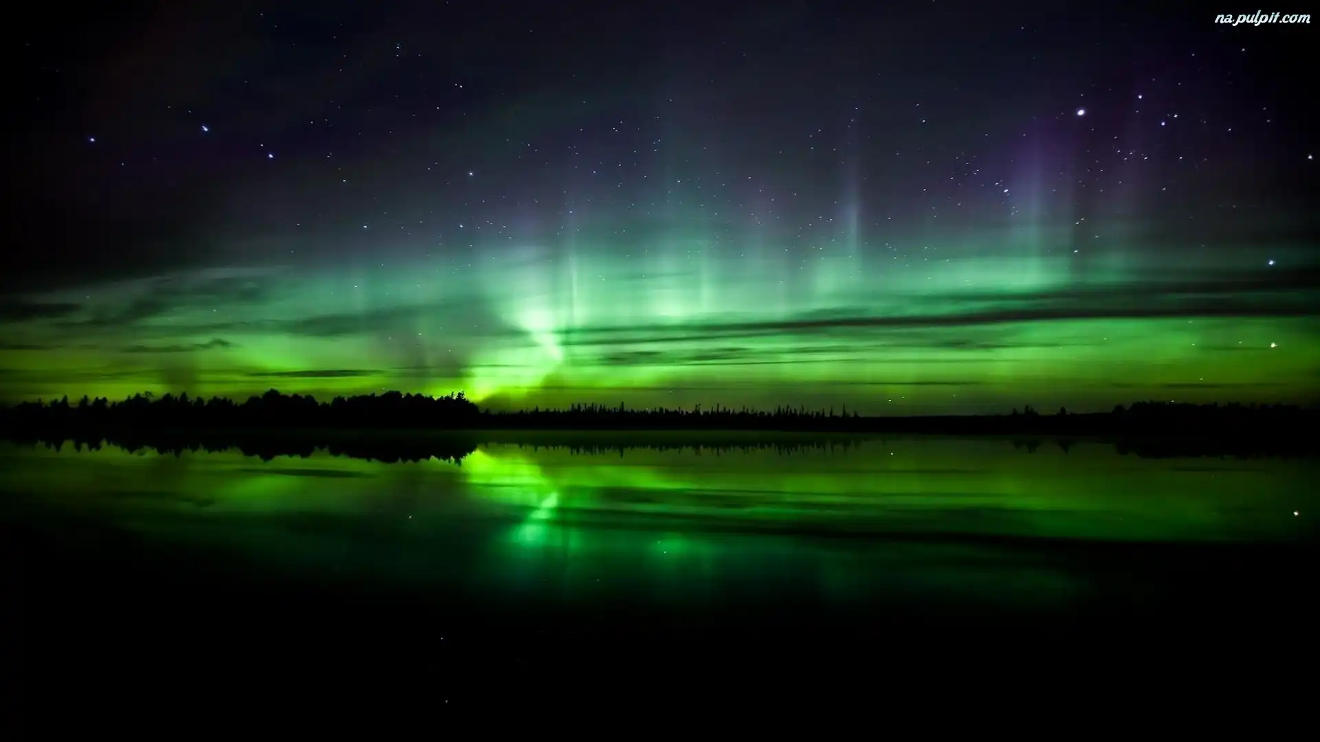 Las, Zorza, Jezioro, Niebo, Polarna Na Pulpit
