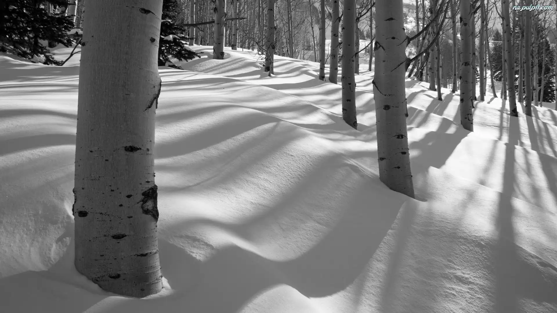 Las, Topole osikowe, Zima, Åšnieg, Drzewa Na Pulpit