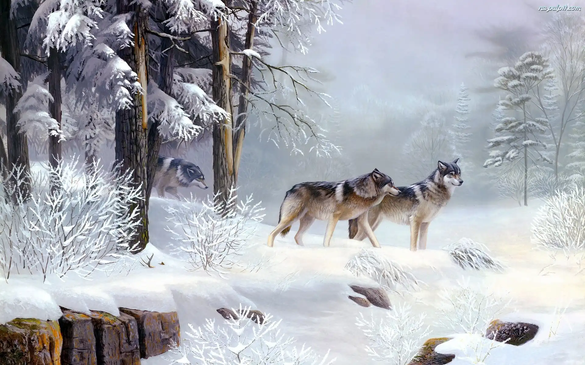Domki, Brukowiec, Most, Rzeka Las, Skała, Góry, Lato, Jezioro Obraz, Olejny Las, Jezioro, Jesień Alice X. Zhang, Ariel Stok, Zima, Świerki Wilk Rzeka, Las niebo, Wilk, chmury Głowa, Wilka Donald Zolan, Rodzeństwo, Spacer Luis Royo, Indianie Obraz, Bitwa, Żaglowce, Morska Wilk