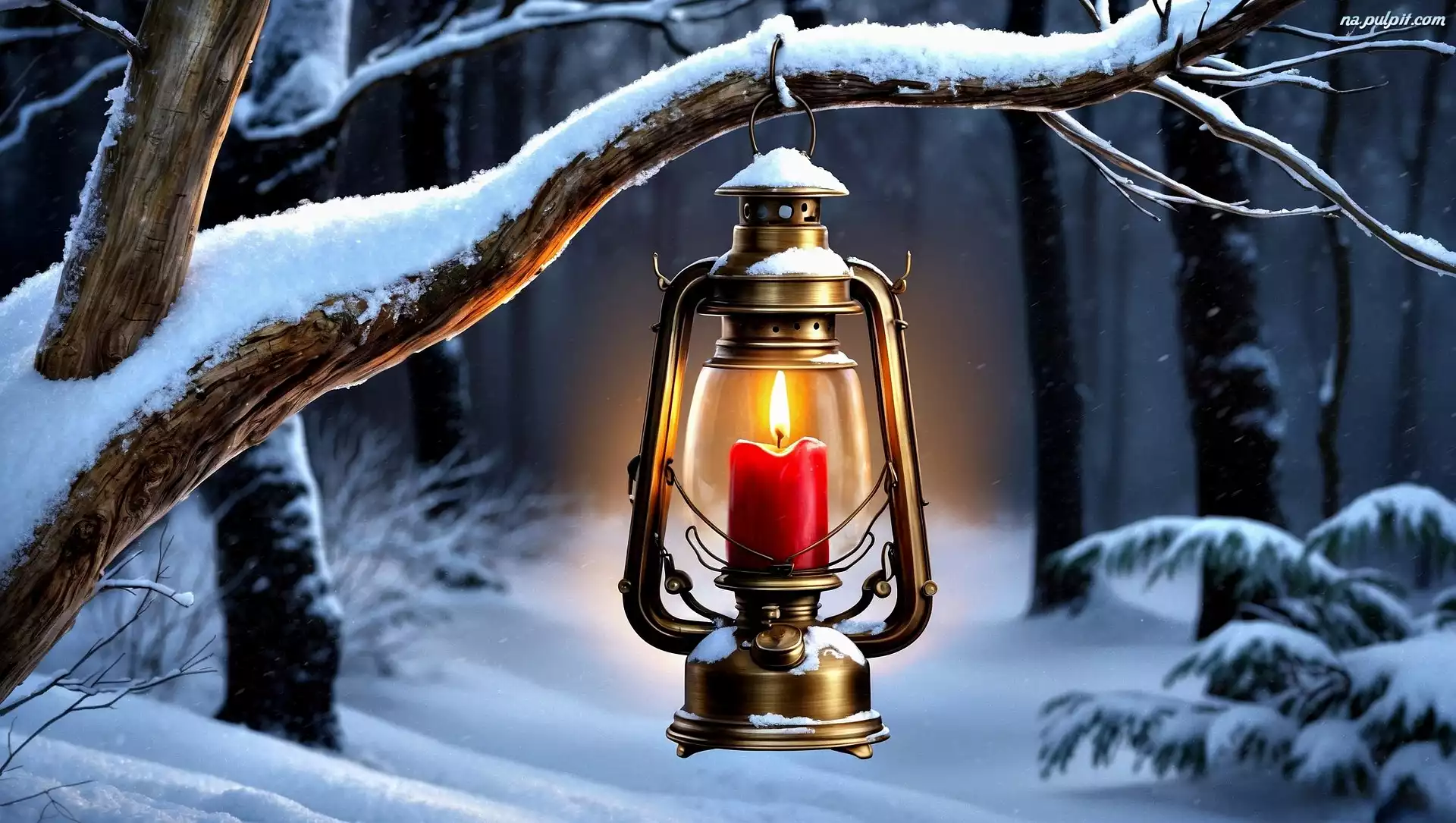 Grafika, Gałęzie, Oszronione, Las, Zima, Drzewa, Lampion Na Pulpit