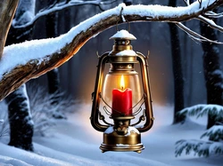 Grafika, Gałęzie, Oszronione, Las, Zima, Drzewa, Lampion