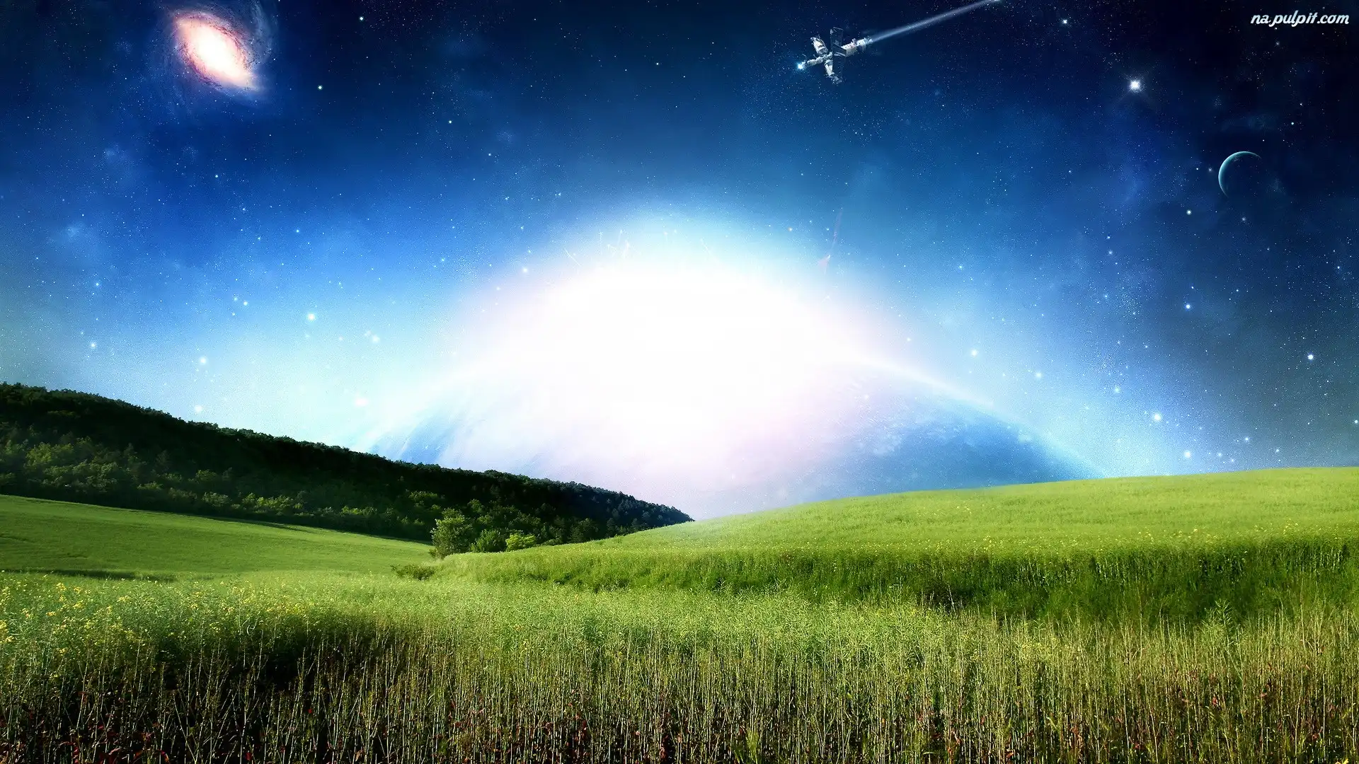 Las, Satelita, Gwiazdy, Niebo, Pole, Planety Na Pulpit