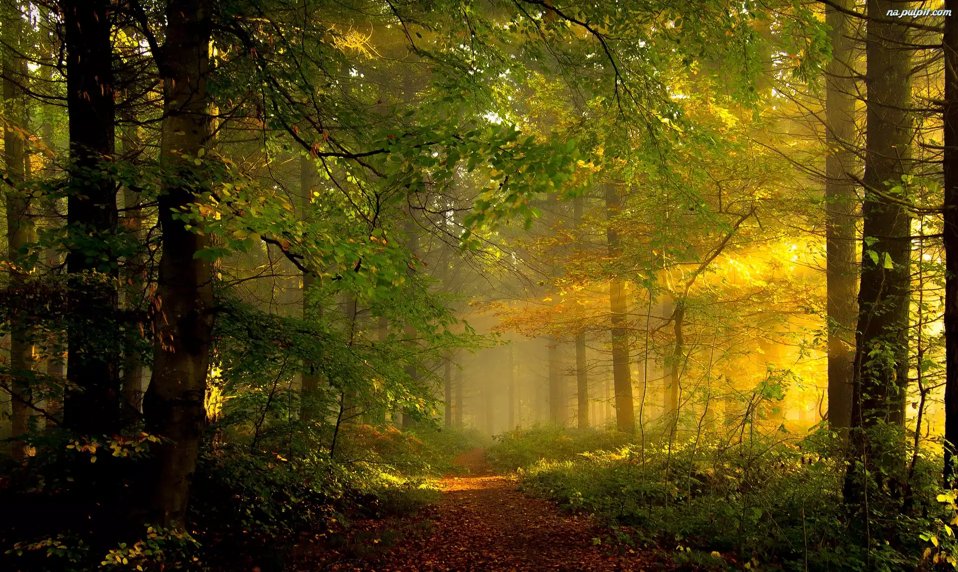 Las, Ścieżka, Drzewa, Przebijające światło Na Pulpit