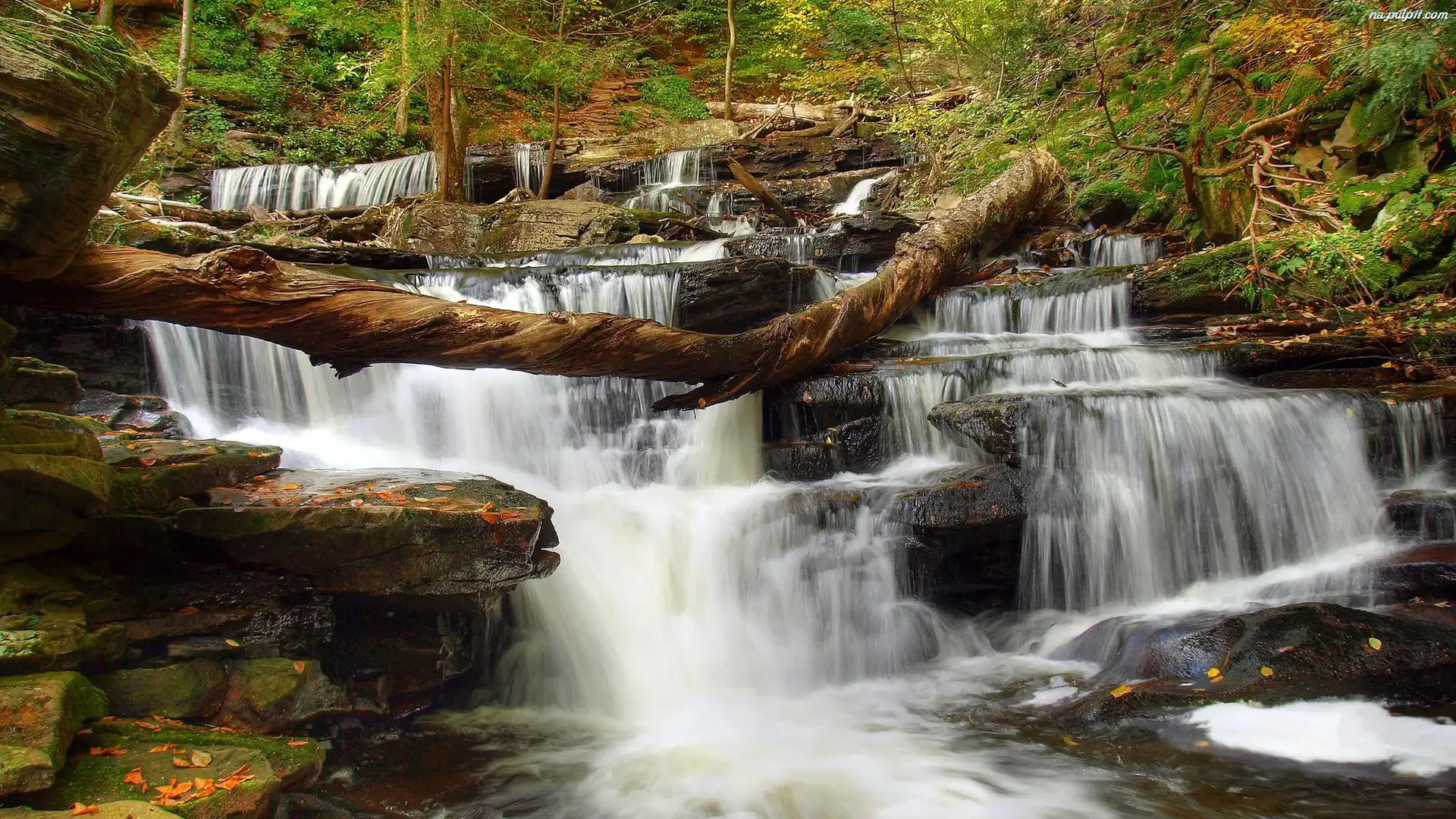 Stan Pensylwania, Las, Drzewa, Ricketts Glen State Park, Stany Zjednoczone, Wodospad