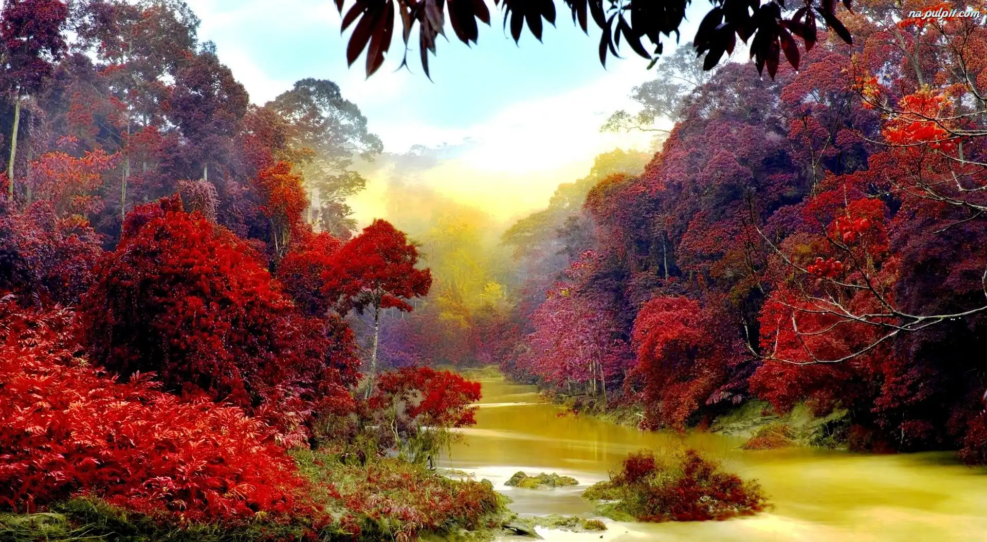 Niebieskie Niebo, Drzewo, Las Jesień, Dwa, Muchomory Las, Przewalone Drzewo Jesień, Droga Rzeka, Most, Niebo Rzeka, Hiszpania, Europa Drzewa, Wysokie, Proste Góry, Rzeka Leśna, Liście, Opadające, Ścieżka Jesień, Central Park, Nowy York Mgła, Kręta, Słońca, Zachód, Rzeka Góry, Las Klonu, Jesień, Liście Góry, Rwący, Strumień