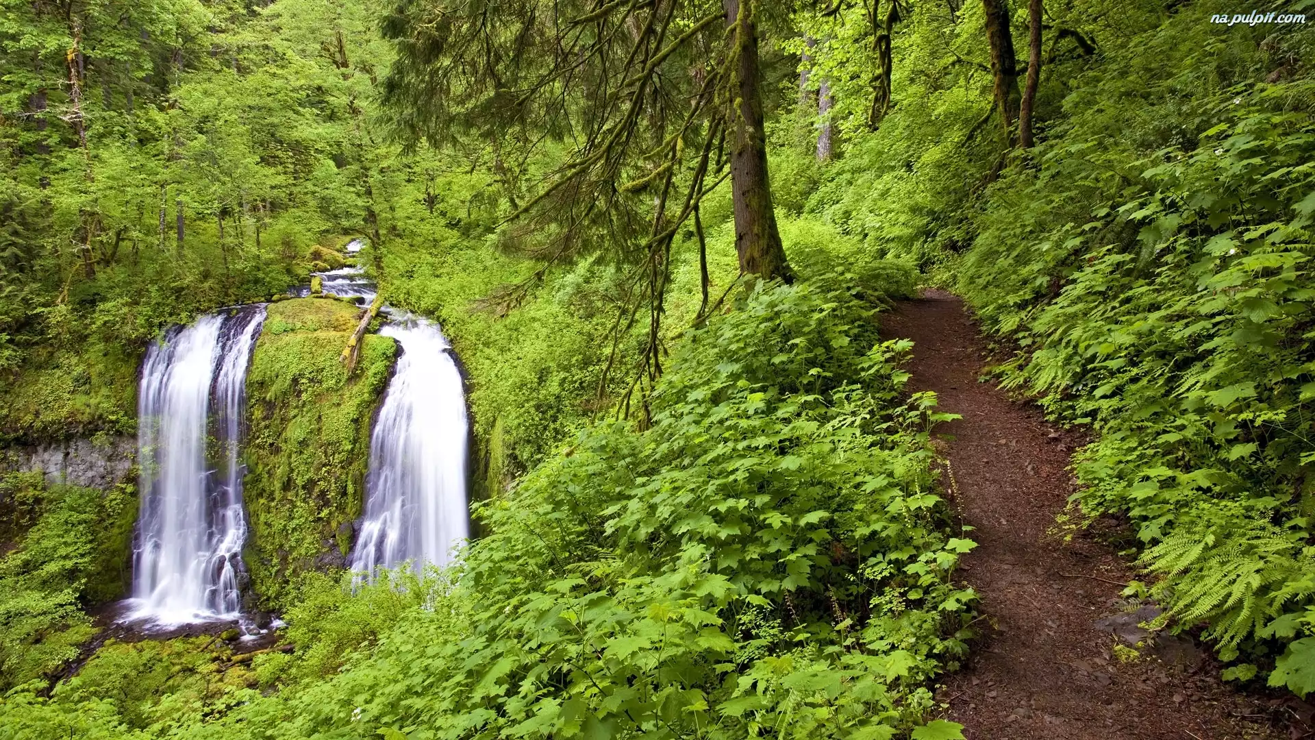 Ścieżka, Rzeka, Las, Wodospad Na Pulpit