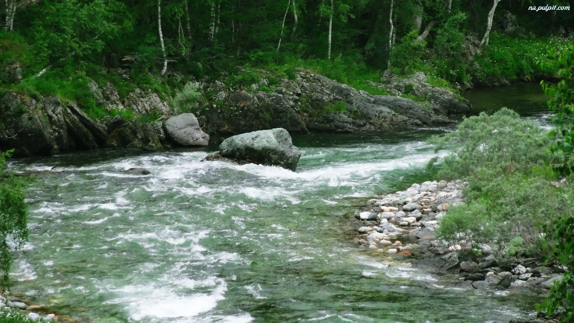 Las, Kamienie, Rzeka, Skały Na Pulpit
