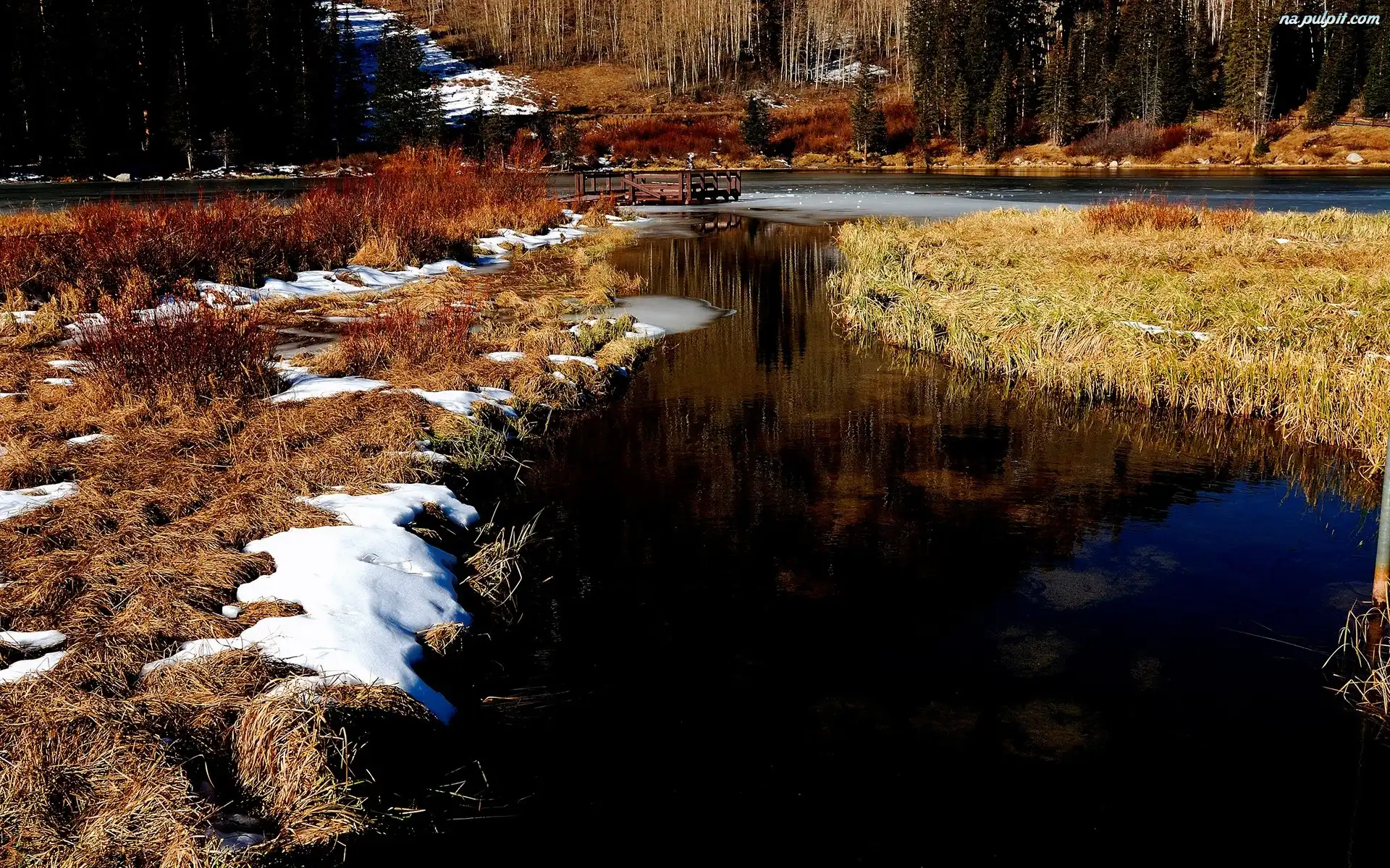 Las, Mostek, Rzeka, Trawy Na Pulpit