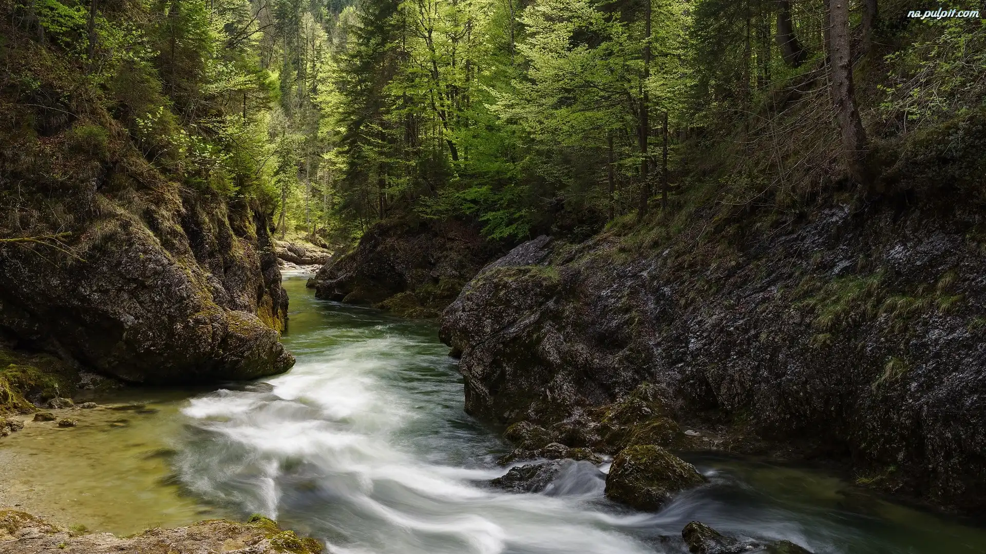 Zielone, Las, Rzeka, Drzewa, Skały Na Pulpit