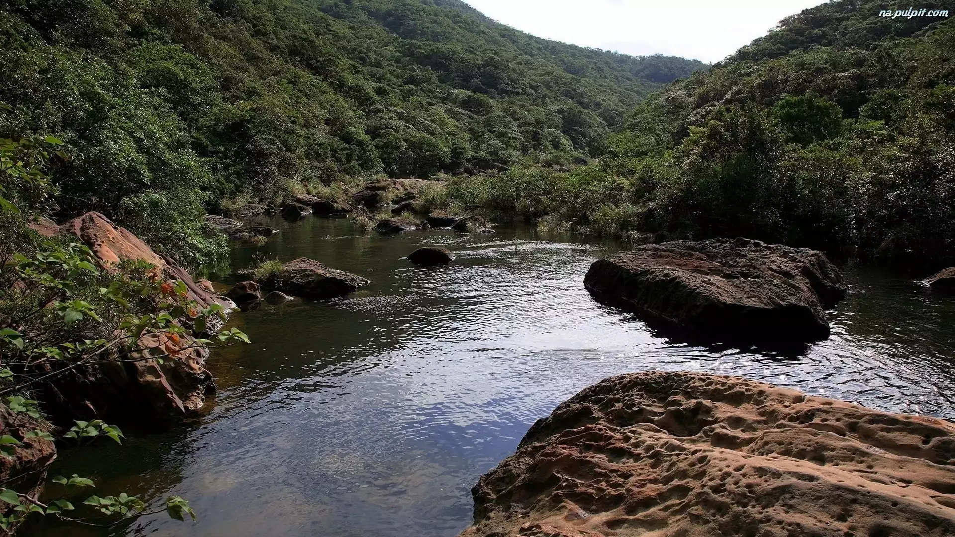 Las, Skały, Rzeka, Kamienie Na Pulpit