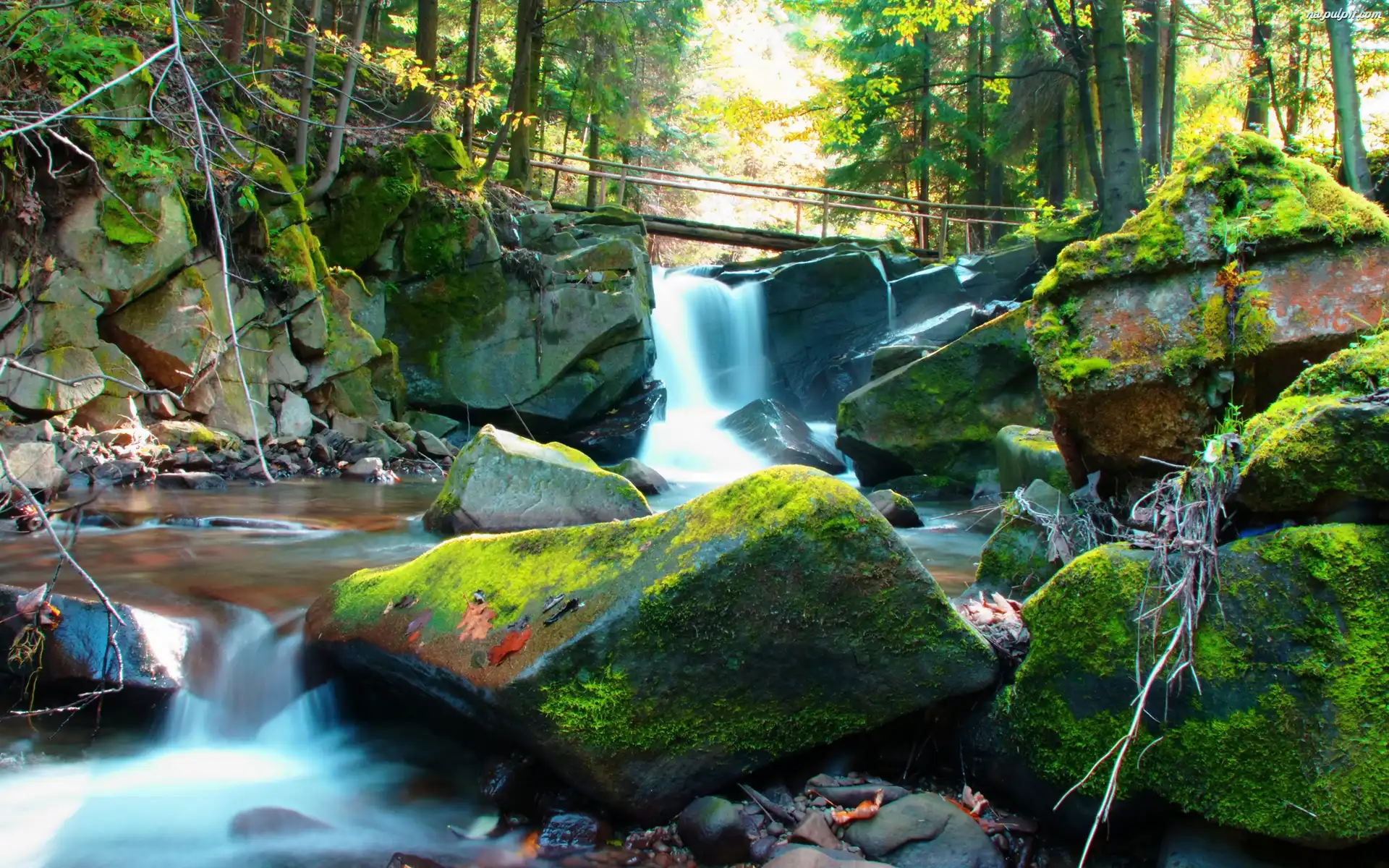 G贸rska Rzeka Las, Wodospad, Konar Niebo, Rzeka, G贸ry Wodospad, je艣ie艅 Kamienie, Brzeg, Morza G贸ry, Zach贸d S艂o艅ca, Rzeka O艣nie偶ony, Las Wodospad Sosny, Kopalnia, Piasku Rozgwiazdy, Muszelki, Kamienie Mech, Wodospad, Kamienie Jesie艅, Ska艂a, Las Las, P艂otek Las, Zielona, Polana