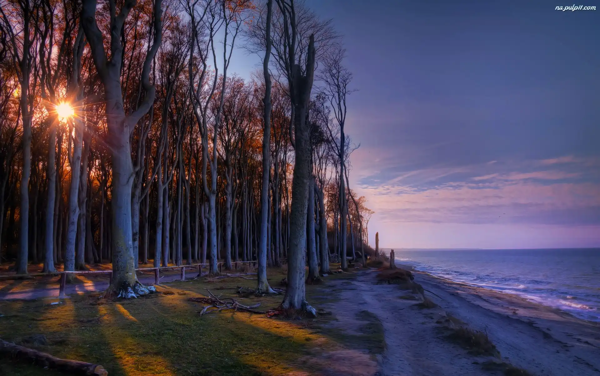 Las, Morze, Wschód słońca, Brzeg Na Pulpit