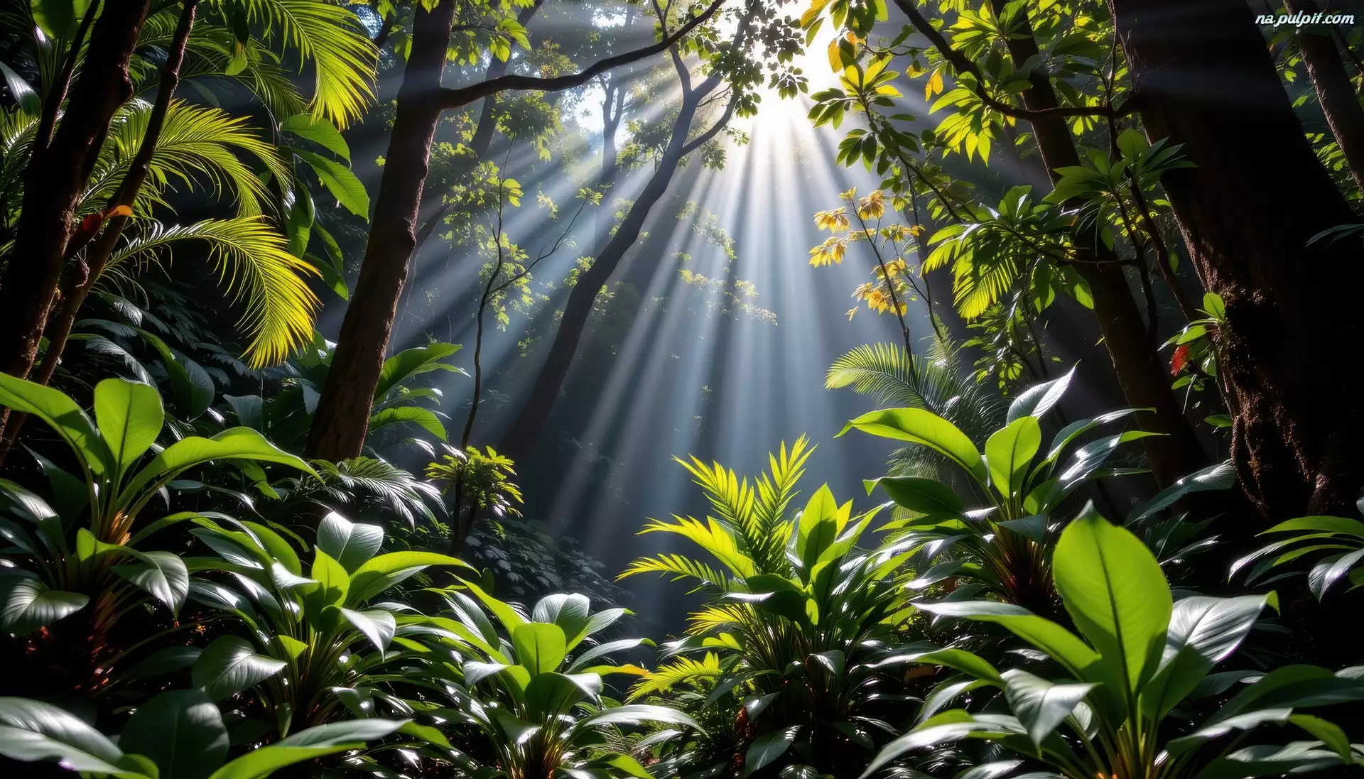 Przebijające światło, Tropikalny, Las, Grafika AI, Rośliny Na Pulpit