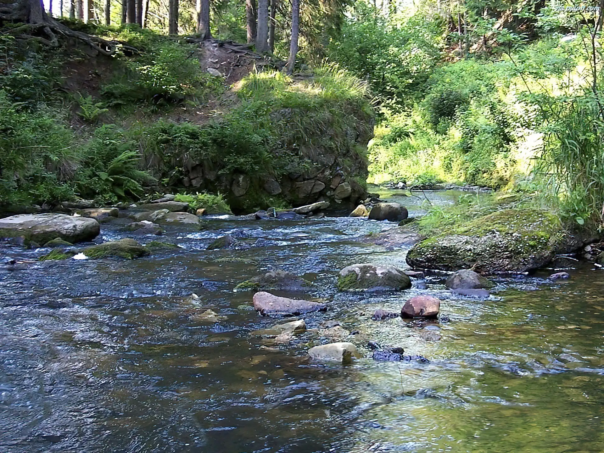 Las, Kamienie, Woda, Trawa Na Pulpit