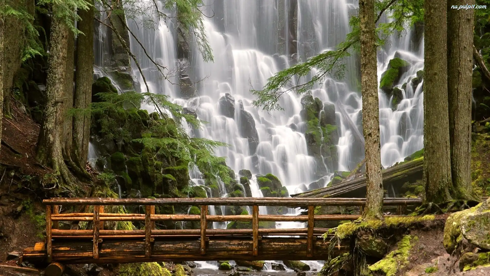 Mostek, Ma艂a, Drzew, G膮szcz, Rzeczka Rzeka, Francja, Most Paprocie, G贸ra, Wodospady Podpory, Most, Betonowe Wodospad Woda, Horsehoe, Kanadyjska, Niagara, Spieniona Ska艂, Wodospad, W艣r贸d Kumamoto, Gorogataki, Wodospad, Prefektura Wodospad Nowy Jork, Most Stok, Most, Obwodnica Kalifornia, Drewniany Most Pi臋kny Wodospad Anglia, Most