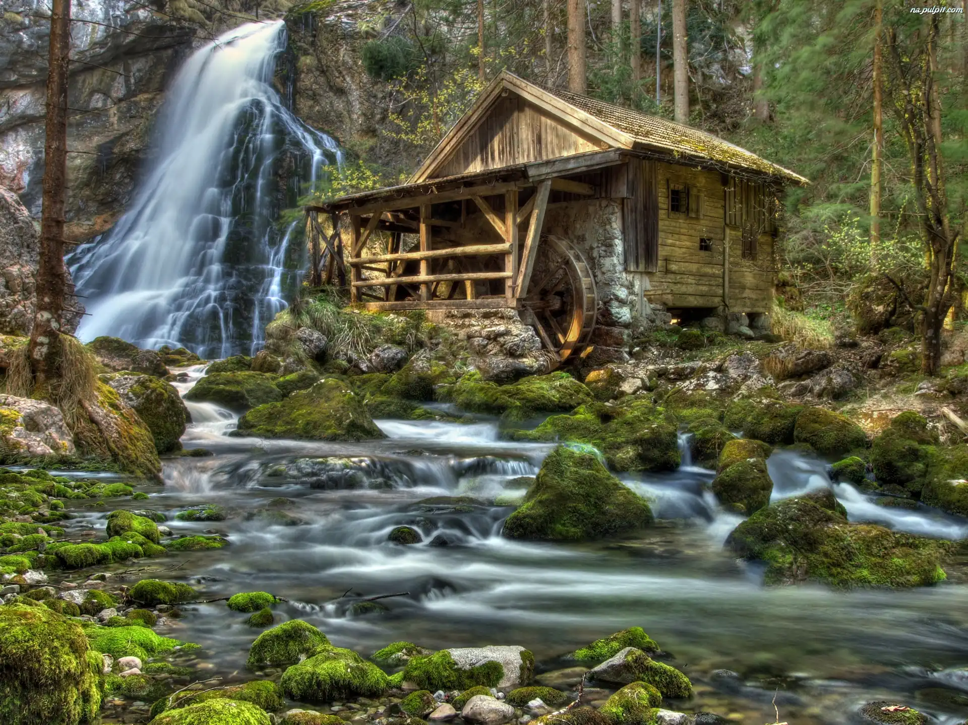Las, Kamienie, Rzeka, Wodospad, Młyn Na Pulpit