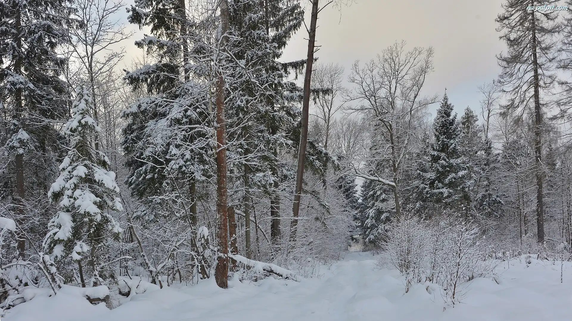 Las, Åšnieg, Droga, Drzewa, Zima, Krzewy Na Pulpit