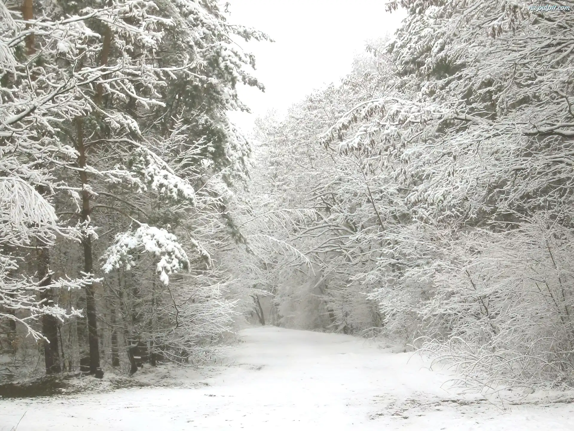 Las, Droga, Zima, Ośnieżony Na Pulpit
