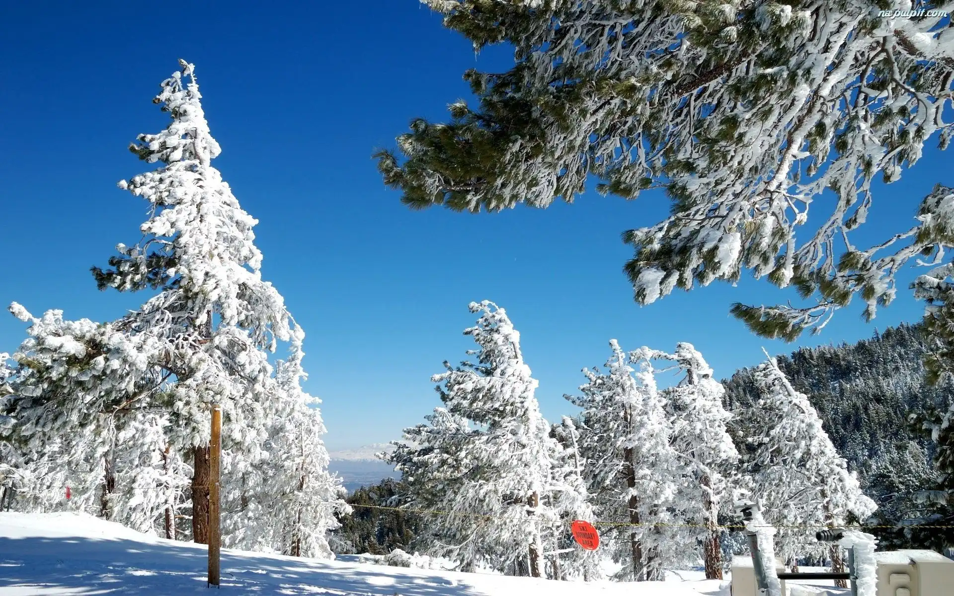 Las, Iglaki, Niebo, Ośnieżone, Zima, Drzewa Na Pulpit