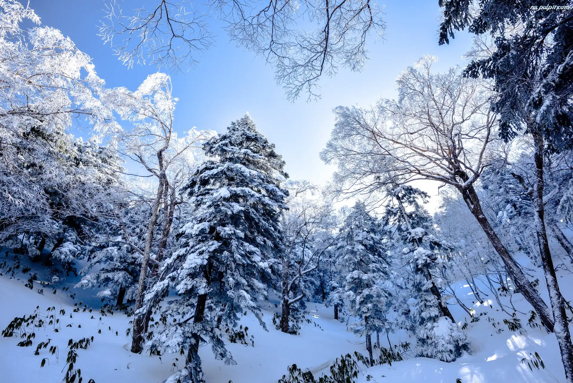Las, Drzewa, Śnieg, Zima, Ośnieżony