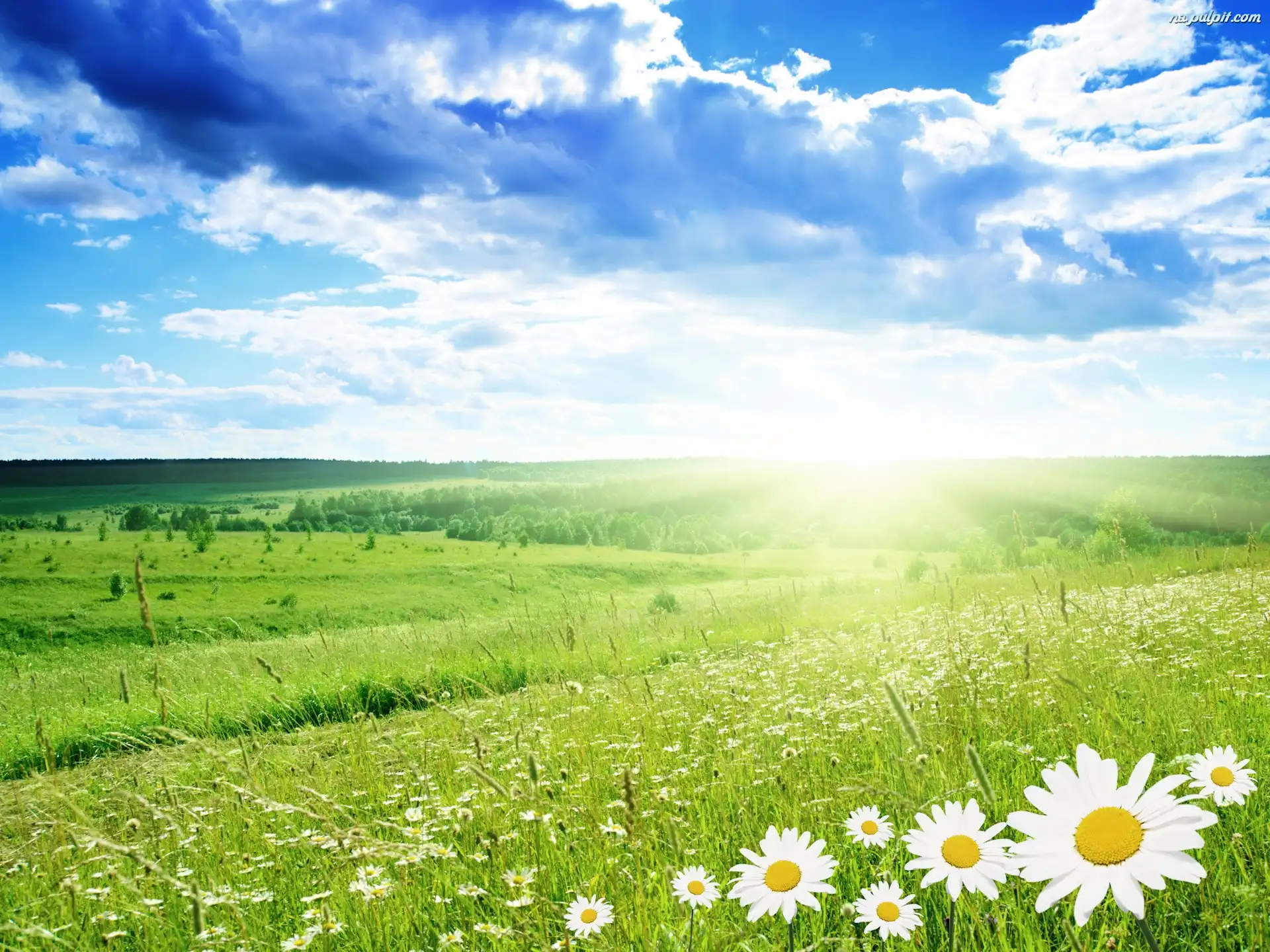 Lasy, Słońca, Kwiatki, Chmury, Łąka, Promienie Na Pulpit