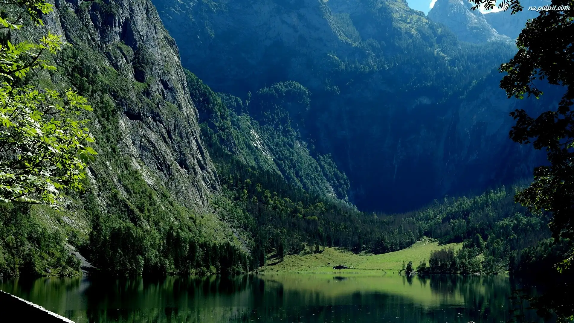 Alpy Berchtesgadeńskie, Park Narodowy Berchtesgaden, Lasy, Bawaria, Niemcy, Drzewa, Jezioro Konigssee, Góry Na Pulpit |