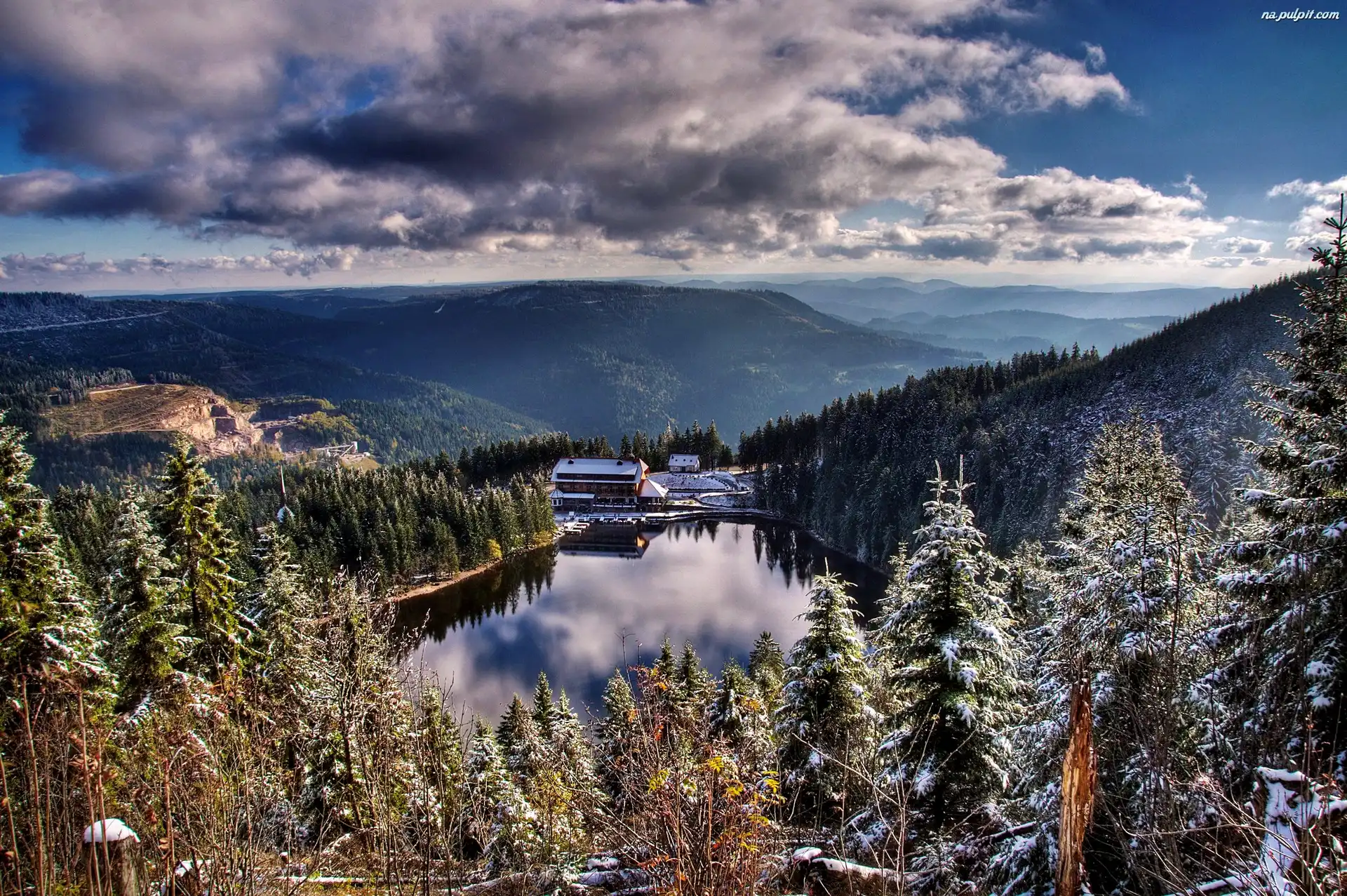 Lasy, Góry, Chmury, Jezioro Na Pulpit