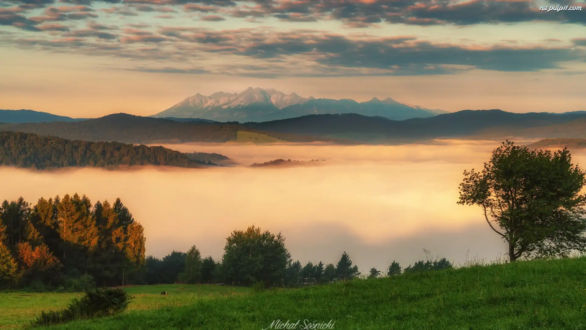 Polska, Lasy, Beskid Sądecki, Mgła, Drzewa, Góry, Chmury Na Pulpit