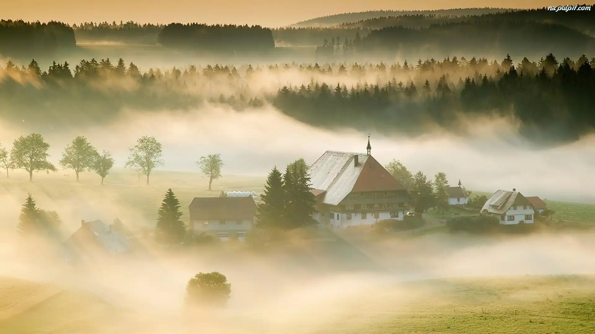 Lasy, Mgła, Domy, Pola Na Pulpit
