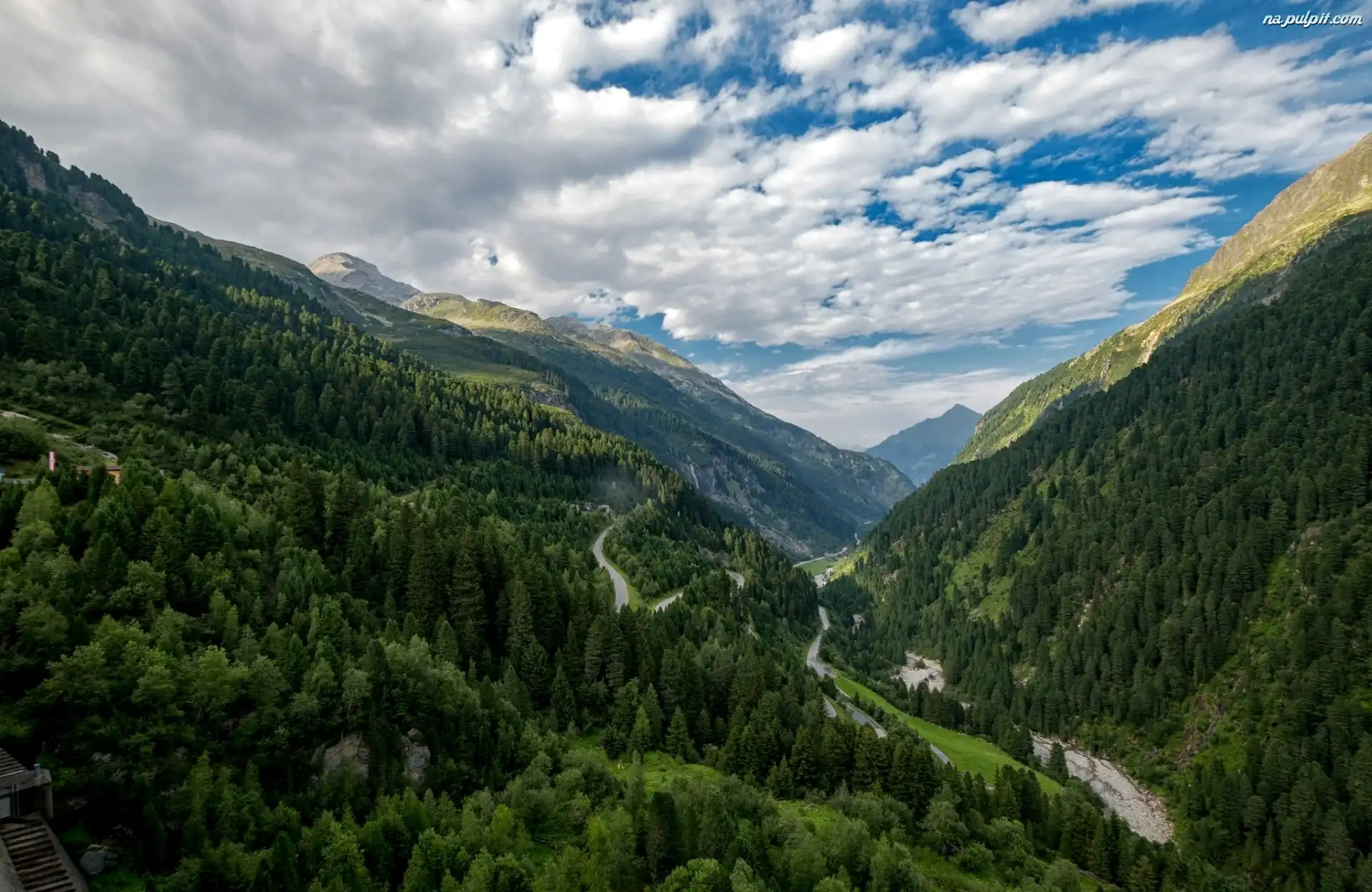 Dolina, Tyrol, Stubaier Alpen, Drogi, Chmury, Góry Alpy, Austria, Lasy Na Pulpit