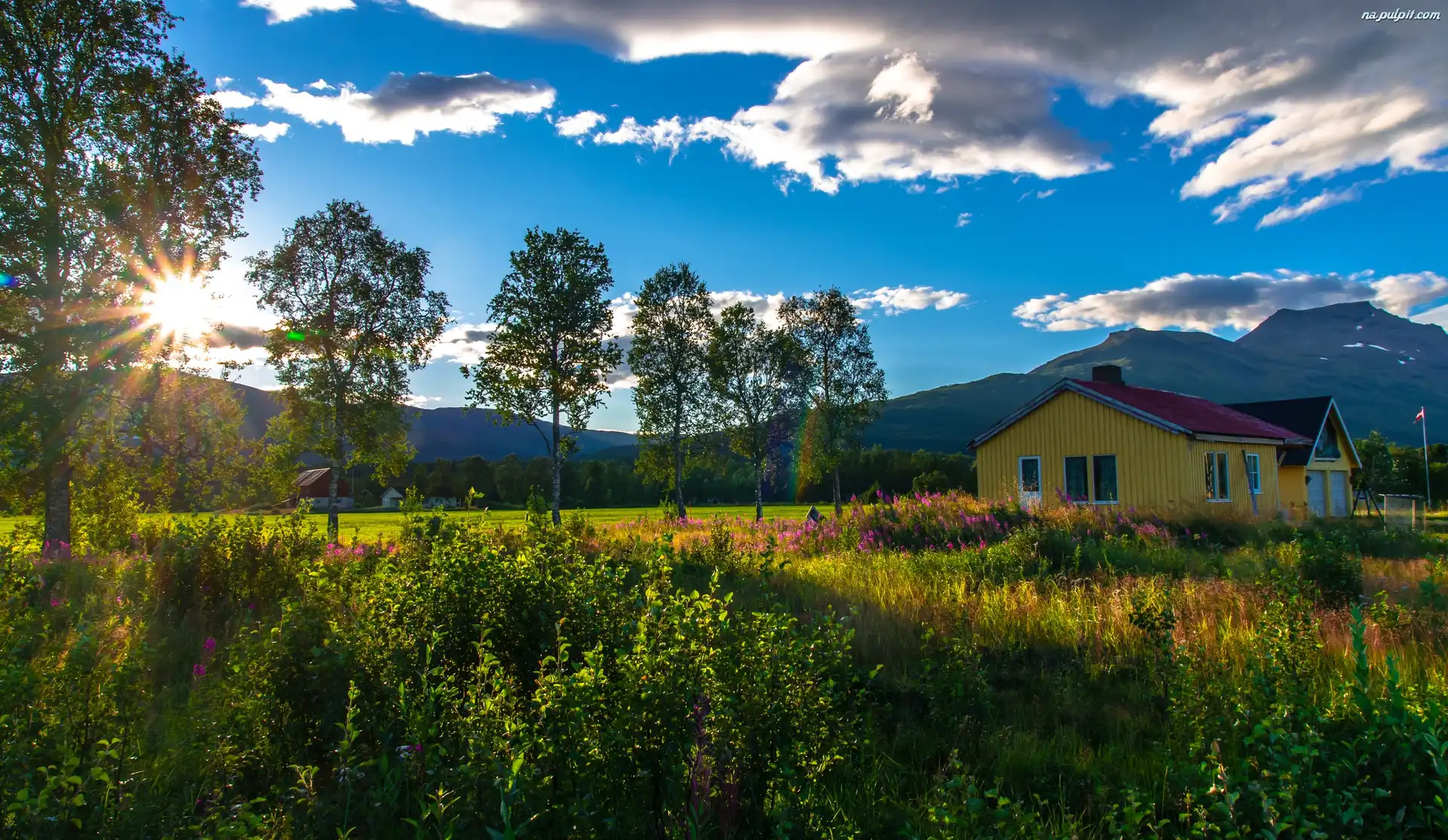 Lasy, Kwiaty, Budynki, Łąki, Góry, Trawy Na Pulpit