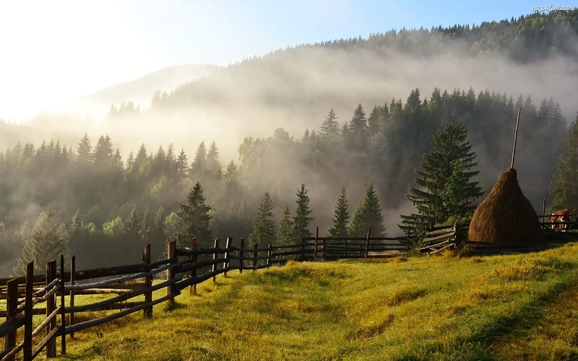 Lasy, Snopki, Jesień, Mgła, Góry, Łąki Na Pulpit