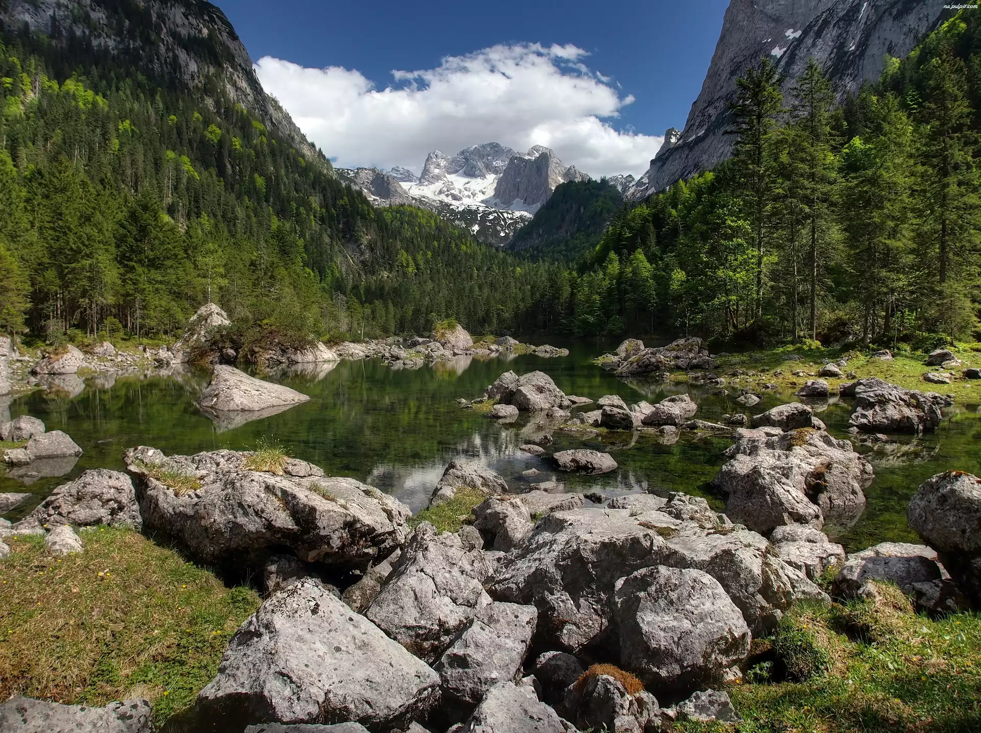 Lasy, Jezioro, Góry, Kamienie Na Pulpit