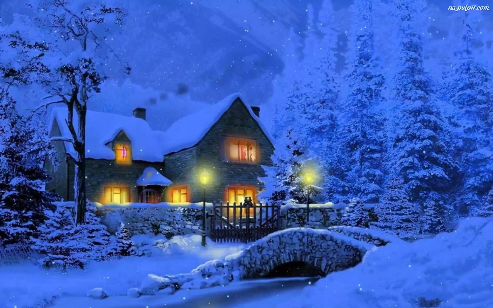 Lasy, Most, Zima, Dom, Góry, Rzeczka Na Pulpit