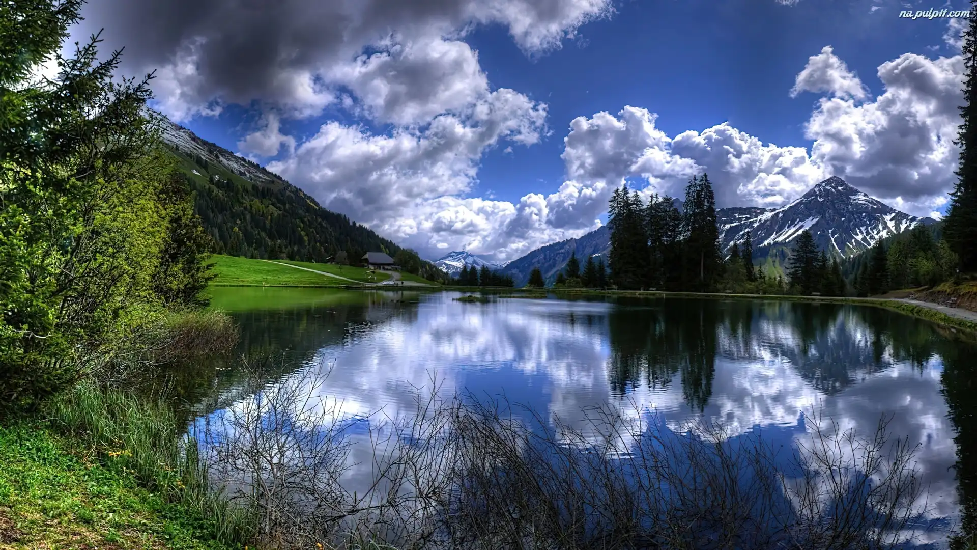 Lasy, Góry, Jezioro, Chmury Na Pulpit