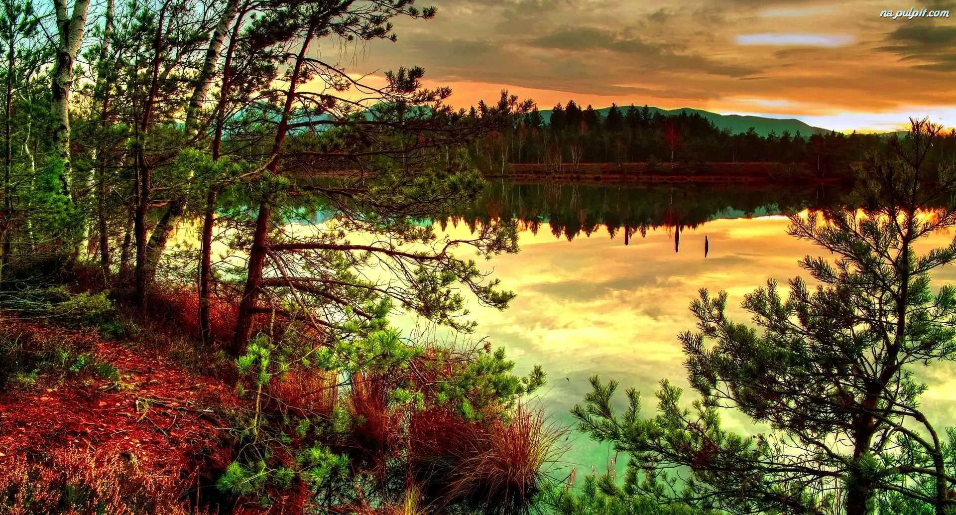 Lasy, Zachód, Jezioro, Słońca Na Pulpit