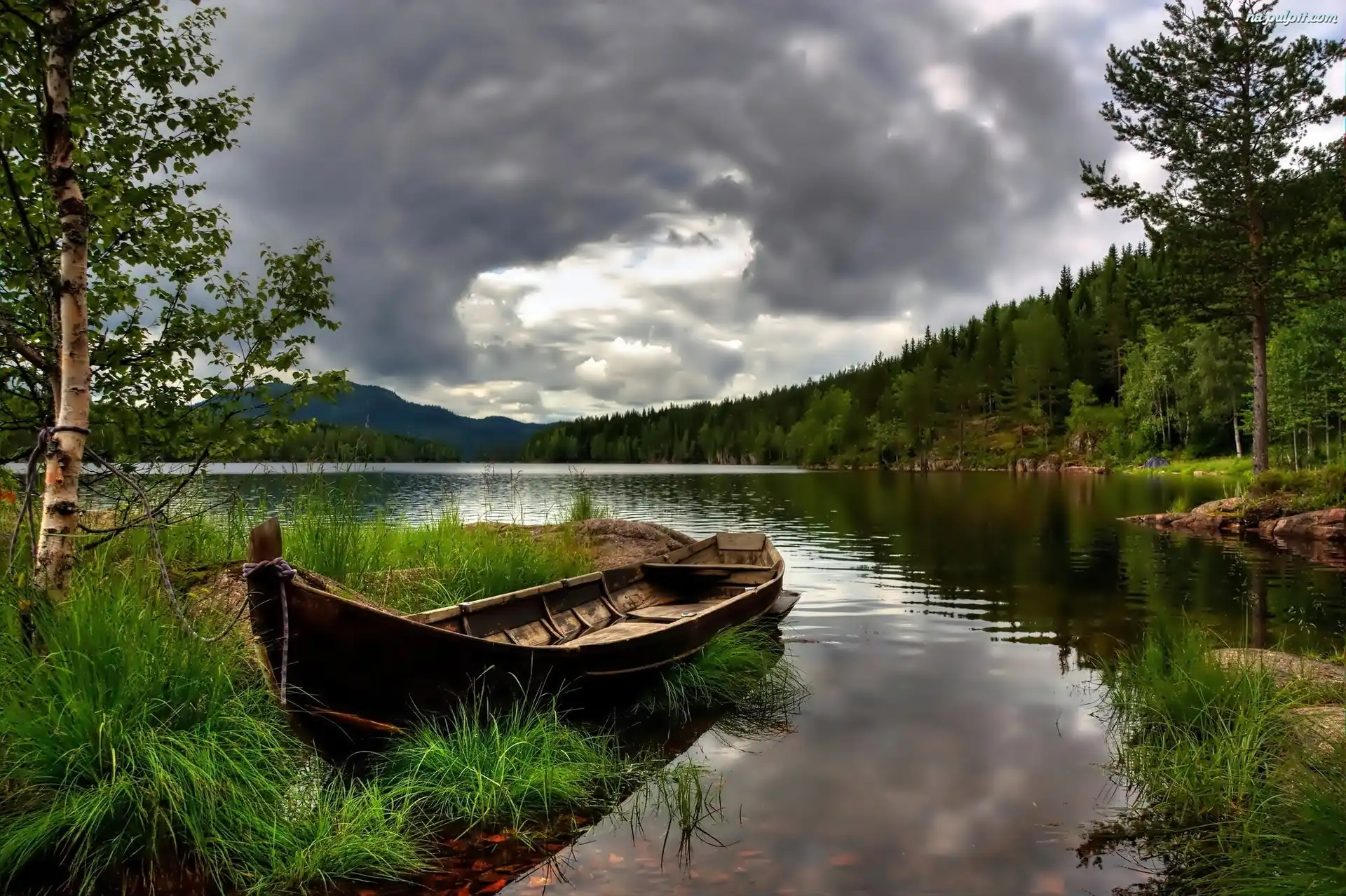 Lasy, Jezioro, Łódka, Góry Na Pulpit