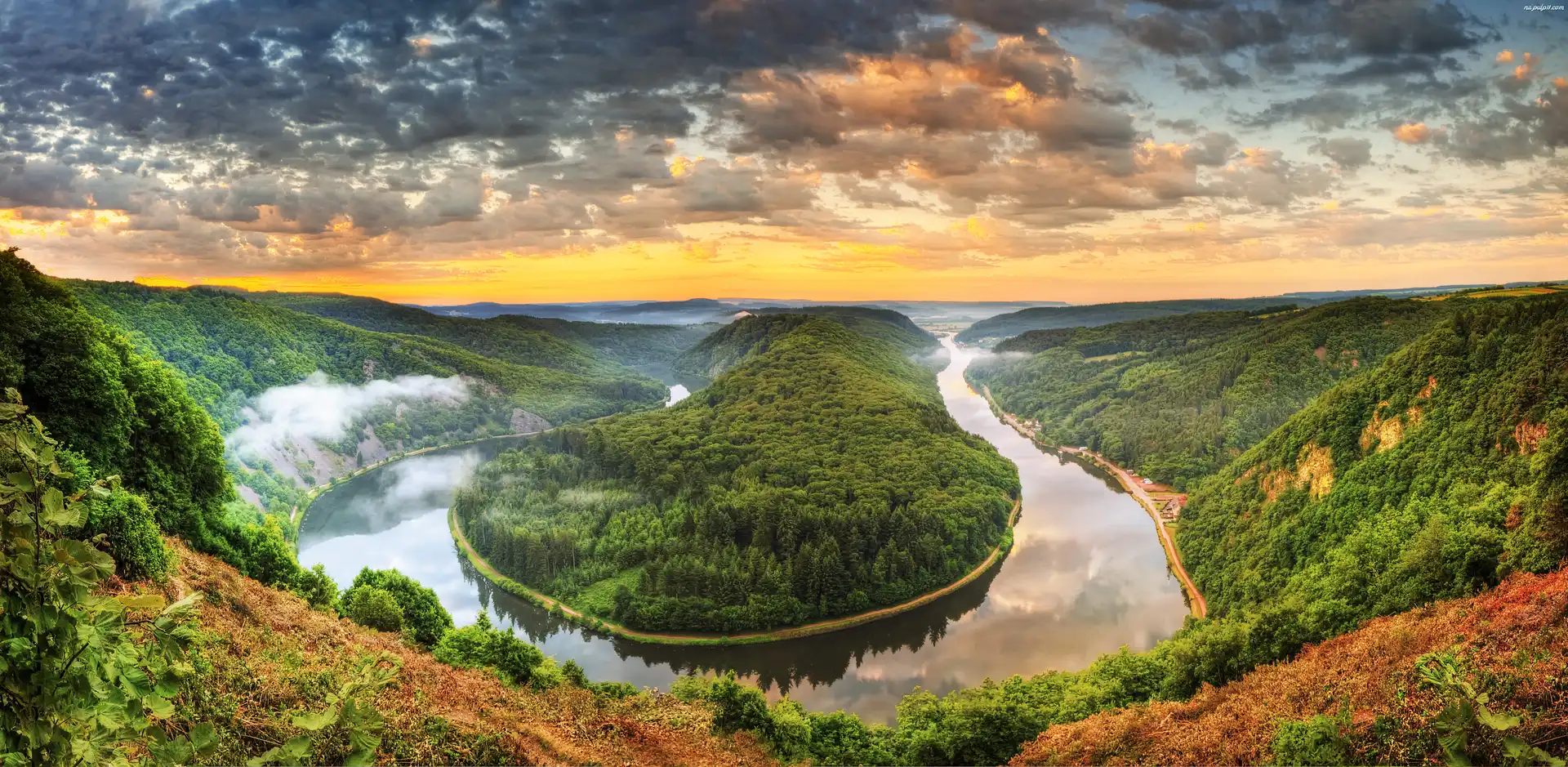 Lasy, Słońca, Zachód, Rzeka Na Pulpit