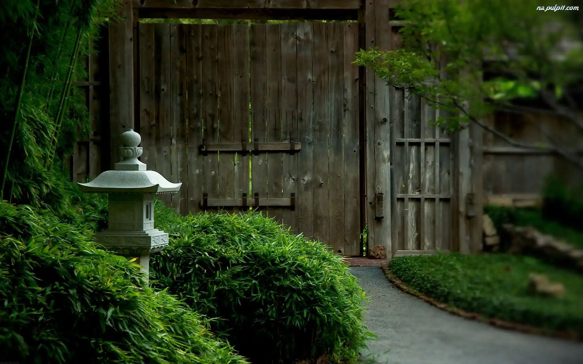 Latarnia, Ogród, Brama, Krzewy Na Pulpit