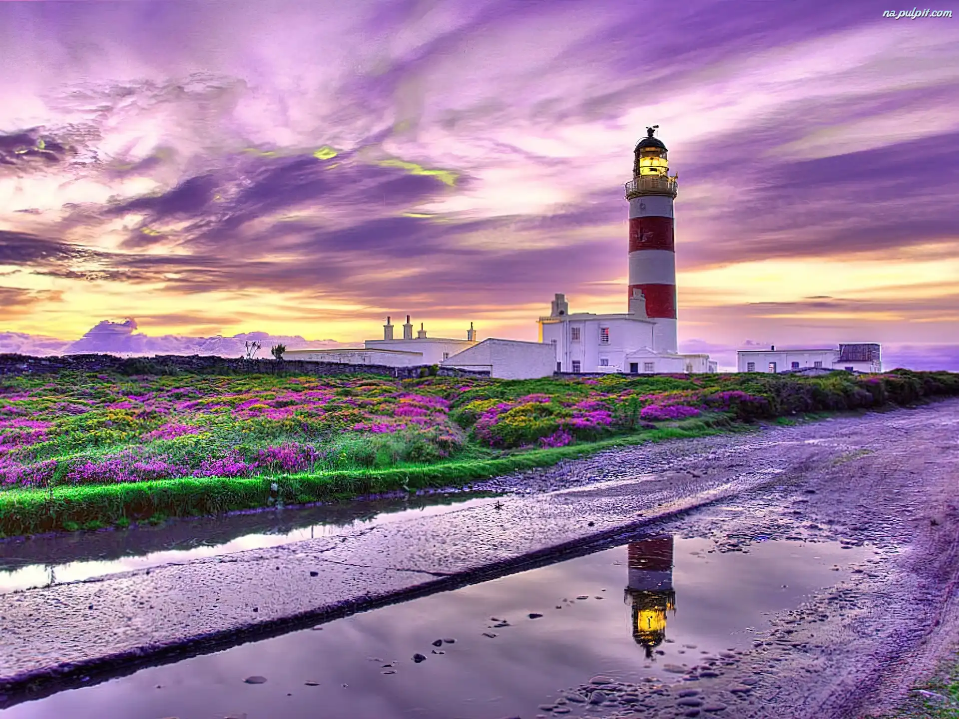 Latarnia morska, Skała Latarnia morska, Góra Plaża, Latarnia morska, Palmy Chmury, Piękne, Pomarańczowe Łąka, Planeta, Zielona Słońca, Morska, Latarnia, Morze, Zachód Latarnia morska, Urwisko Tęcza, Chmura Zachód Słońca, Chmura Latarnia morska, Płotek Latarnia morska Skała, Latarnia morska, Fale Chmury, Droga, Kłębiaste Latarnia morska