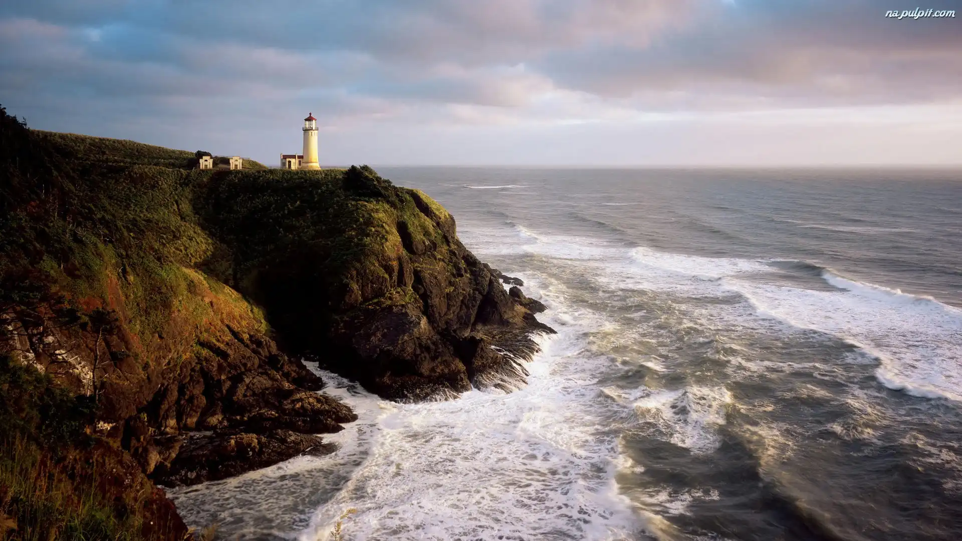 Latarnia, Zarośnięte, Morze, Skały Na Pulpit