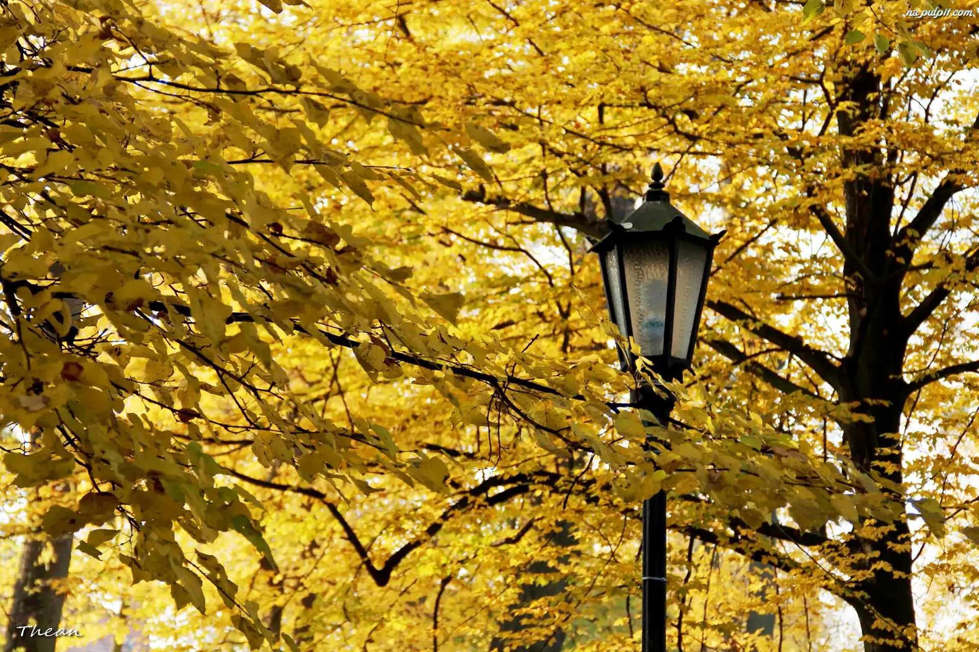Latarnia, Jesienne, Żółte, Liście Na Pulpit