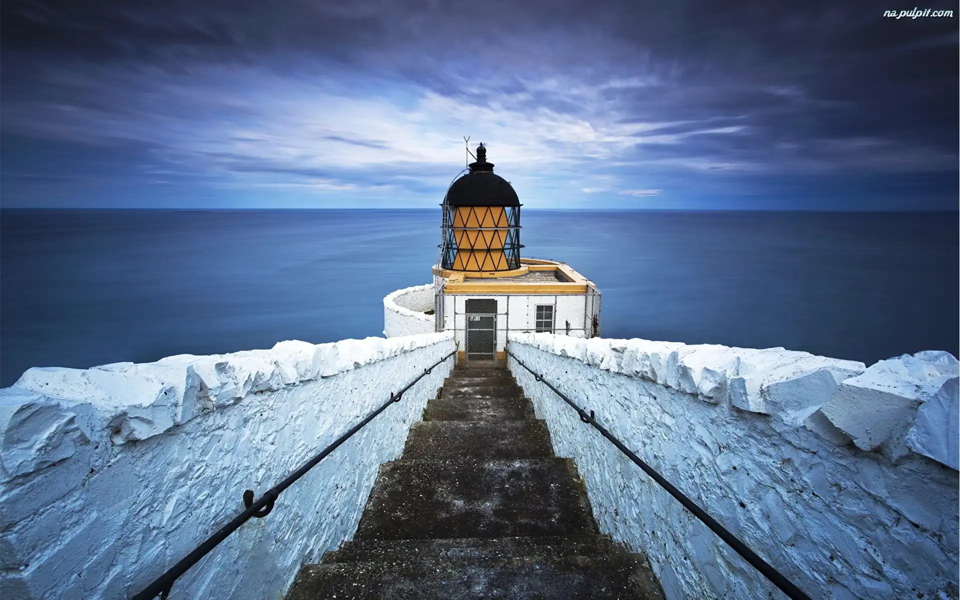 Latarnia morska, Horyzont, Morze, Szkocja, Schody Na Pulpit