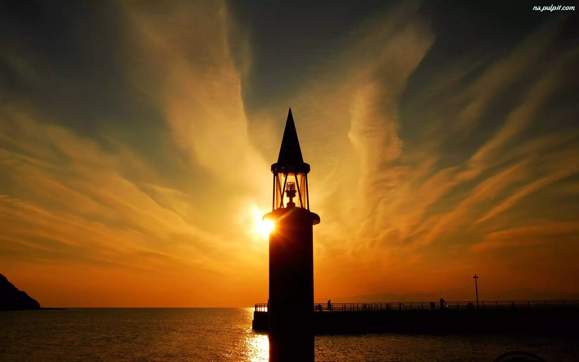 Latarnia, Słońca, Zachód, Morze Na Pulpit