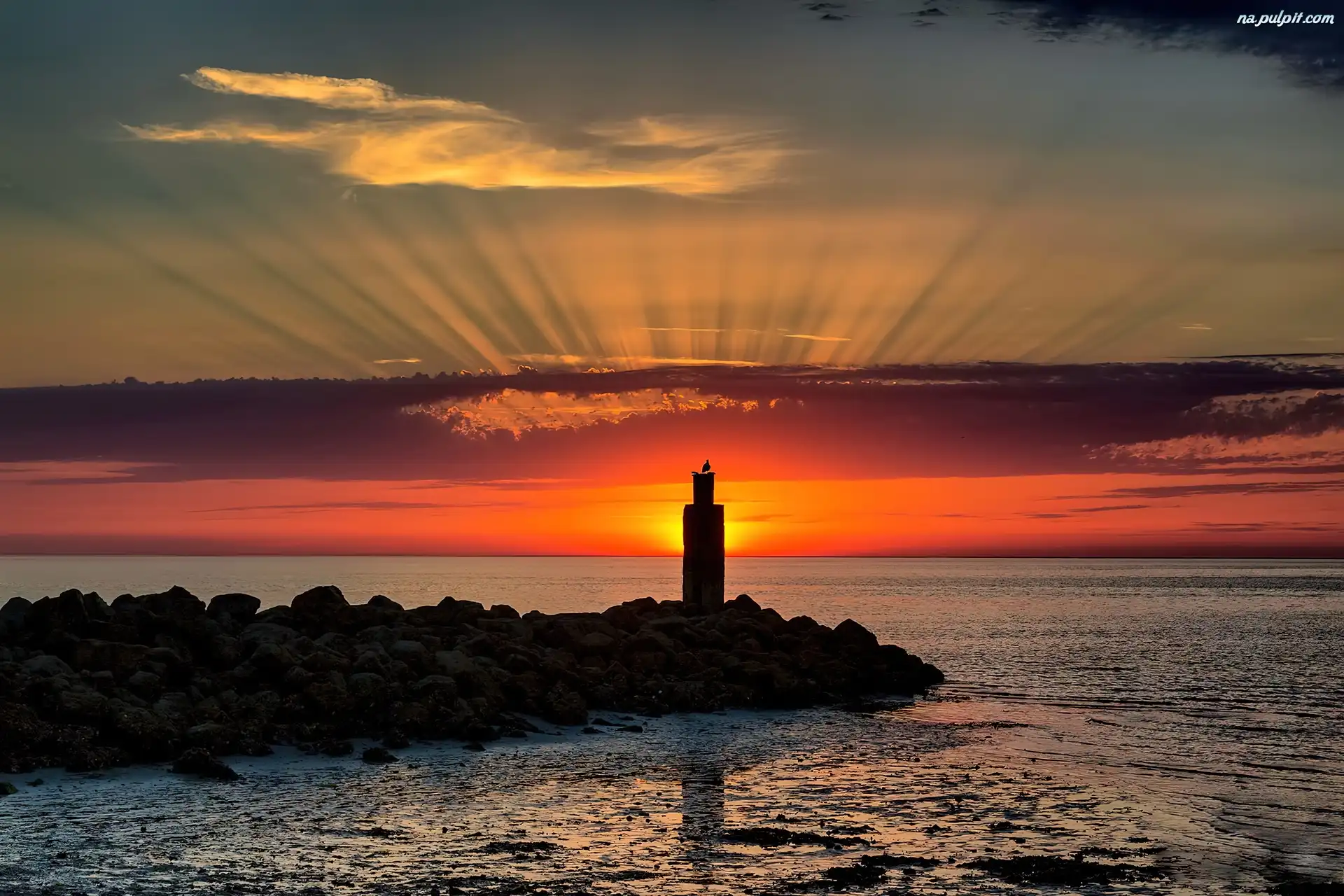 Latarnia, Promienie, Słońca, Zachód, Morze Na Pulpit