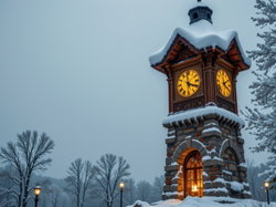 Drzewa, Zima, Wieża, Latarnie Budowla, Zegar Na Pulpit