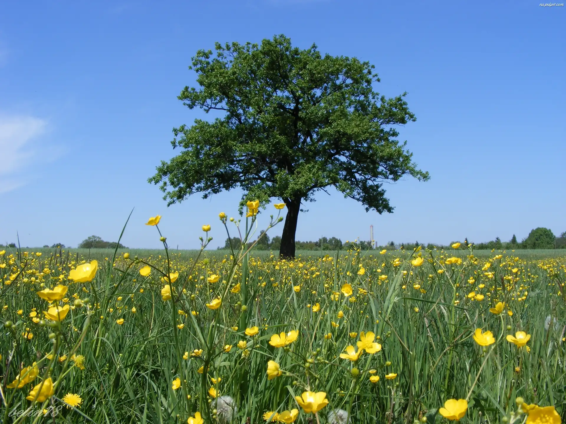 Lato, Drzewo, Łąka, Krajobraz, Kwiaty