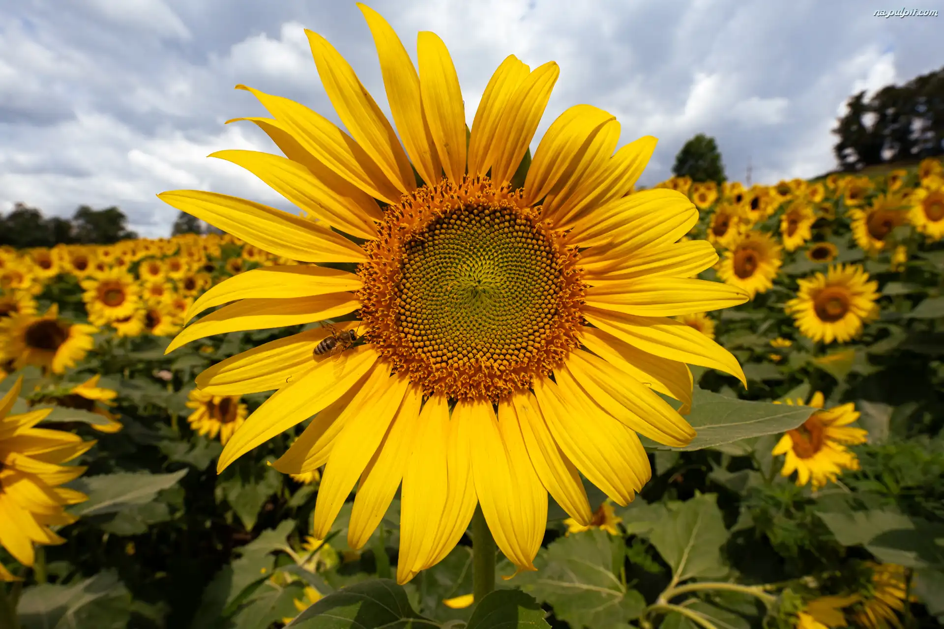 Kwiaty, Słoneczniki, Pszczoła, Lato Na Pulpit
